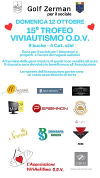 15° Trofeo VIVIAUTISMO O.D.V., un evento sportivo e solidale organizzato da Golf Zerman per il sociale in favore della nostra associazione. 📅 Domenica 12 ottobre 📍 Golf Zerman ⛳ Torneo di golf (9 buche, 4